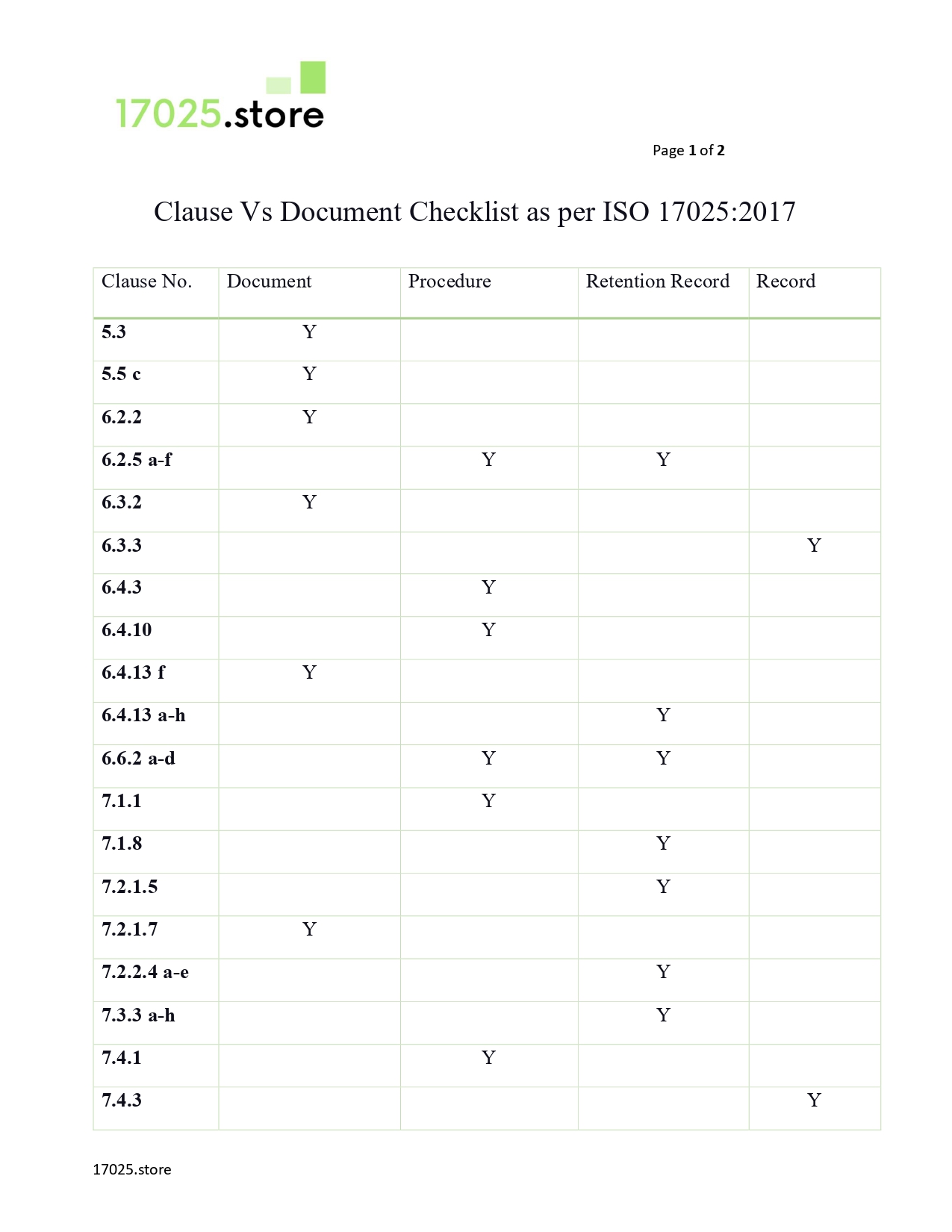 - PDF: Clause vs Document Checklist